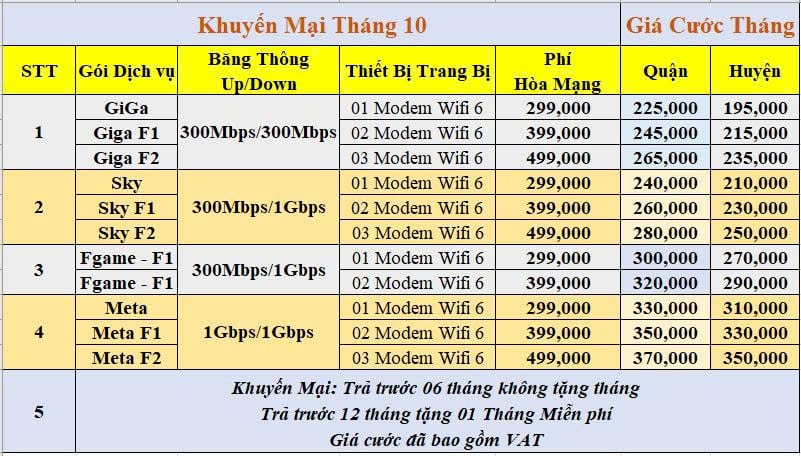 1/ BẢNG GIÁ LẮP MẠNG INTERNET DÀNH CHO CÁ NHÂN.