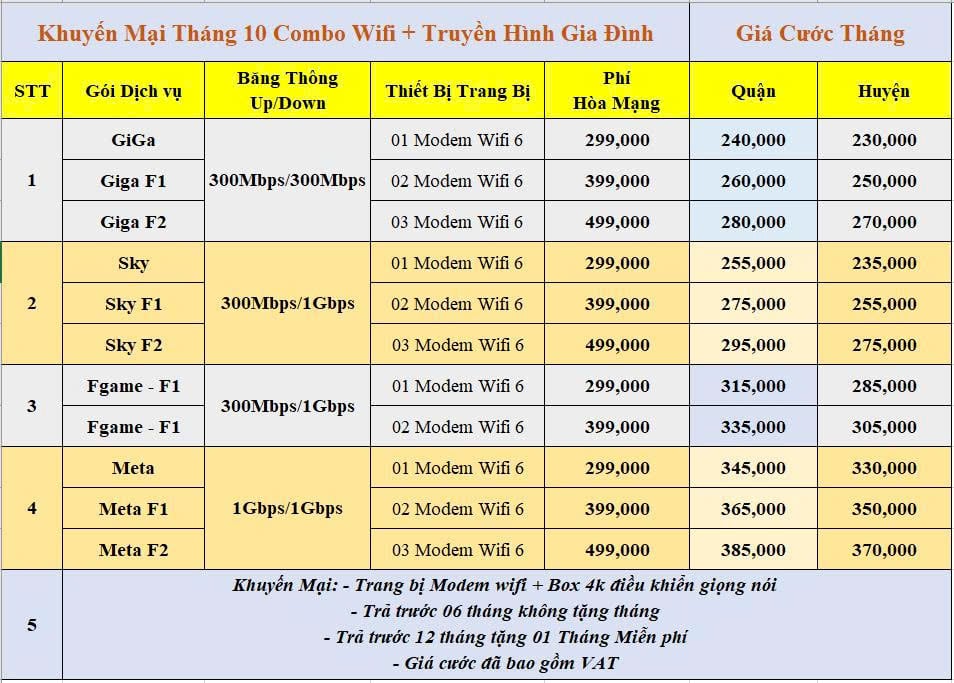 2/ Khuyến mại gói COMBO Internet + Truyền Hình HD 4K.